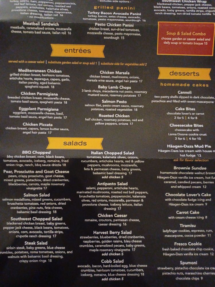 baby greens, roma tomatoes, kalamata olives, onions, cucumbers, artichoke hearts, red & yellow peppers, mushrooms, mozzarella, feta & parmesan, balsamic basil dressing